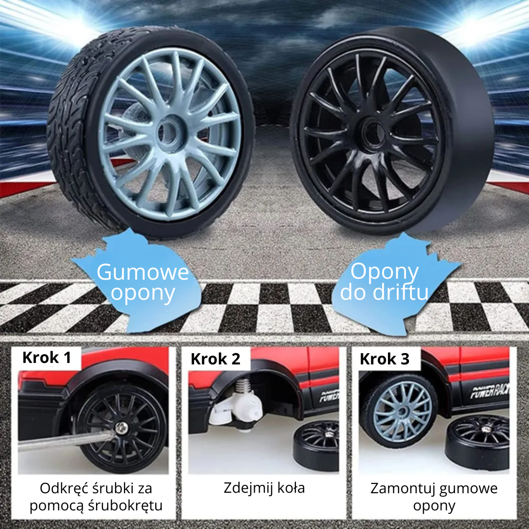 Auto ma serio dużą moc! Mogę nim jeździć po domu i driftuje się tak płynnie, jakby to był model za co najmniej kilka razy drożej. Dobry zakup dla każdego, kto chce zacząć przygodę z modelami do driftu.